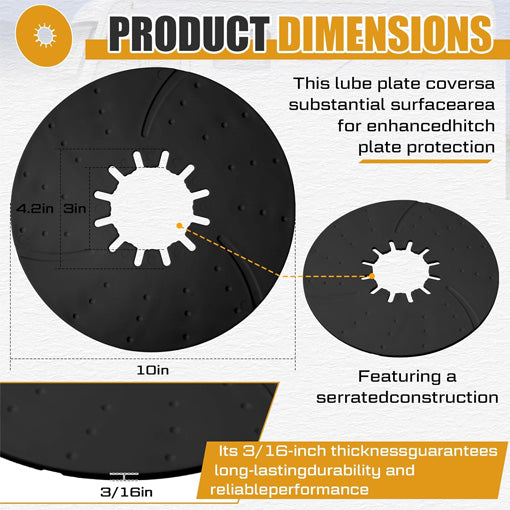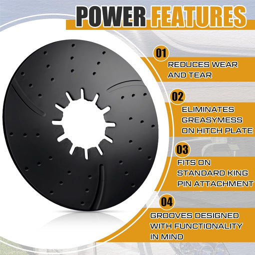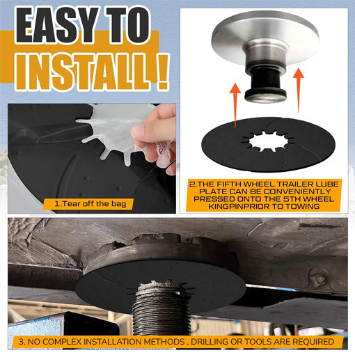 ✅Smooth, Friction-Free Towing: Metal contact between the hitch and kingpin causes noise and wear over time. This lube plate eliminates that problem by forming a slick barrier that keeps the connection smooth and quiet. No grease needed—just consistent, low-friction towing on every trip.