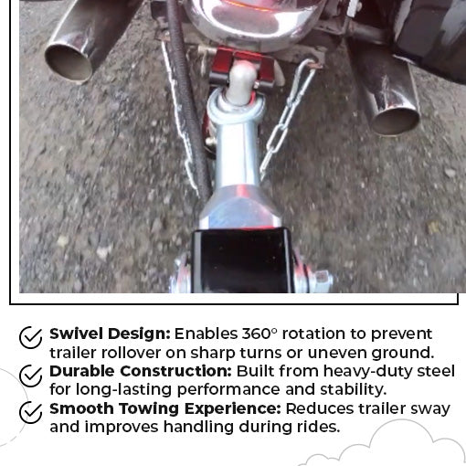 ✅Unmatched Safety & Flexibility: Full 360-degree rotation so you can lean harder while towing. Motorcycle Swivel Heim Hitch Coupler is designed to prevent hitch binding or damage, allowing natural motorcycle lean and balance, even during tight turns or sudden drops.