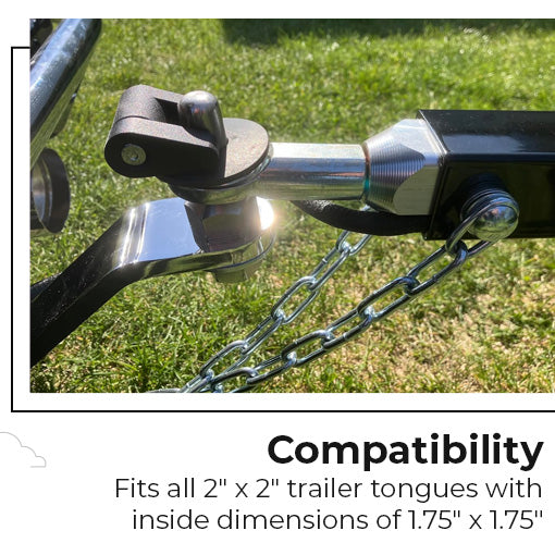 Compatibility: Fits all 2" x 2" trailer tongues with inside dimensions of 1.75" x 1.75"