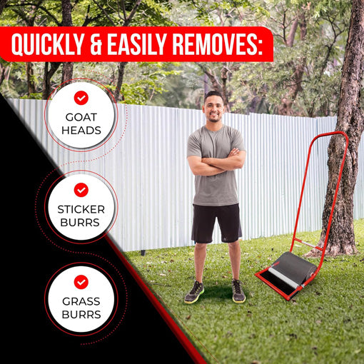 A: The Sticker Burr Remover Yard Tool quickly works on all outdoor surfaces to removes sticker burrs, grass burrs, and goatheads stickers keeping your pets, shoes, and tires burr-free.
