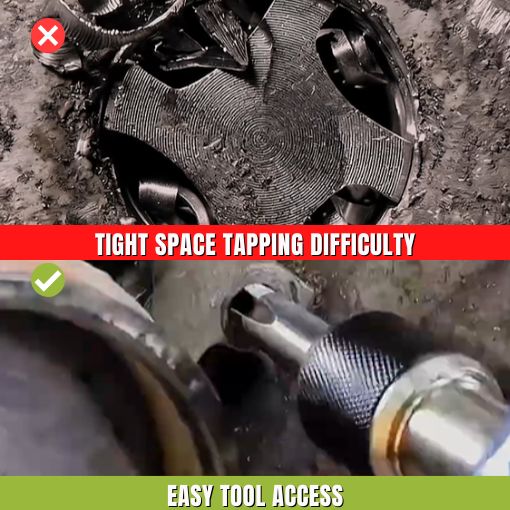 ✅Ratcheting Design for Tight Spaces: The 15° swing angle allows rapid threading in cramped engine bays or confined workshops, cutting your effort in half compared to bulky T-handle wrenches. It’s perfect for plumbers, mechanics, and DIY enthusiasts working where standard tools can’t reach.