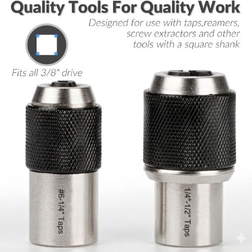 Compatibility: All 3/8" square drive ratchets and impact drivers; Taps #6 to 1/2" (M3-M12); Also works with screw extractors, reamers, and thread chasers