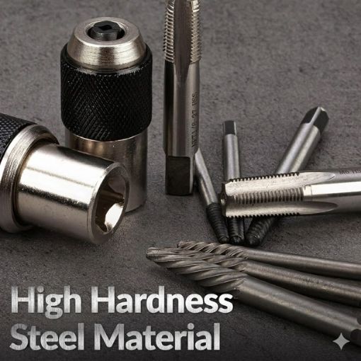 ✅Adjustable Self-Tightening Jaws: Securely grips #6 to 1/2" taps (M3-M12) without slipping. Hardened steel teeth bite into worn extractors, preventing frustrating slip-outs while maintaining vibration-proof stability.
