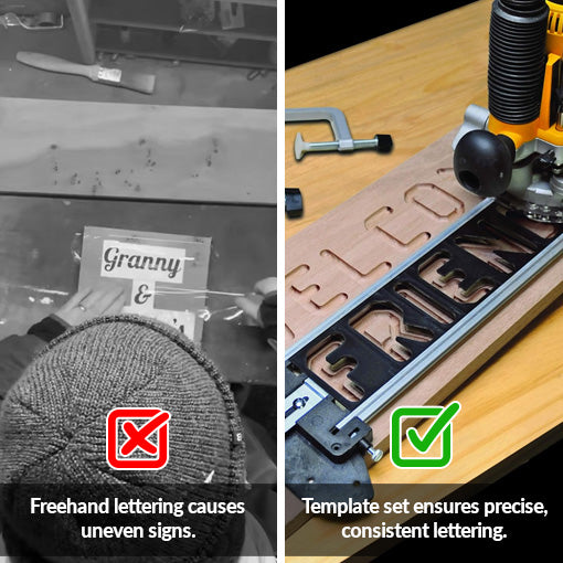 A: The Router Letter Template Set is self-spacing, which ensures letters and numbers are perfectly aligned without measuring. They are made from durable polymer, so they last through repeated use. It reduces errors and makes the sign-making process faster and simpler.