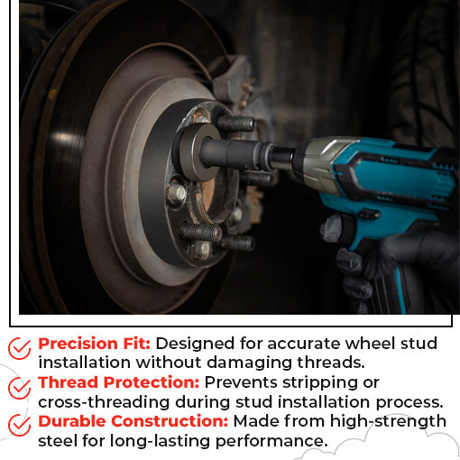 ✅ Professional Results with Basic Tools: No need for expensive shop equipment. Use it with a standard impact wrench or ratchet, and achieve precise, secure stud installation that’s safe for your wheels and lugs.