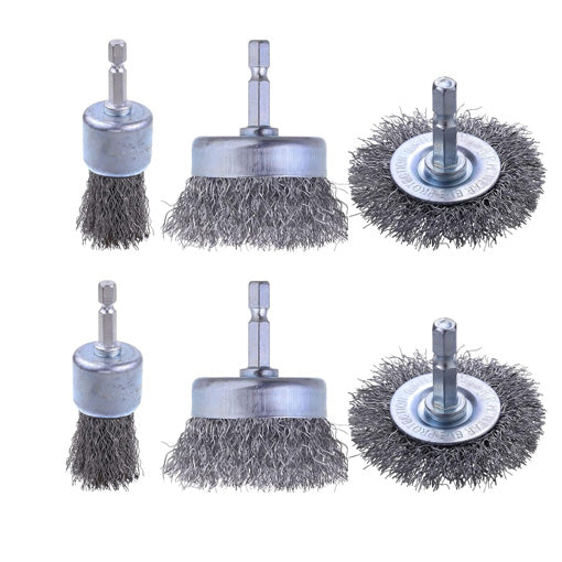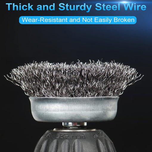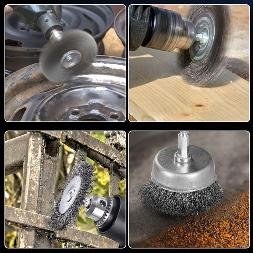 ✅ Durable & Safe Construction: Made with premium black steel wire that is expertly bound and balanced, the brushes resist fraying or deformation during use. The set includes 2 cup brushes (approx. 2.5 inches), 2 wheel brushes (approx. 2 inches), and 2 pen brushes (approx. 0.75 inches), providing a long-lasting, reliable solution for corrosion, rust, paint, and weld spatter removal.