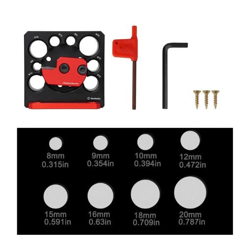 ✅ All-in-One Size Options: Featuring eight interchangeable hole sizes ranging from 8mm to 20mm, this jig adapts easily to different project needs. Whether you’re crafting furniture joints, decorative accents, or custom parts, you can switch sizes quickly for seamless versatility in any woodworking task.