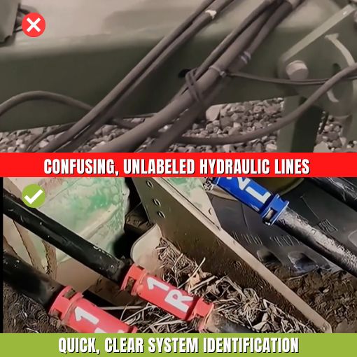 ✅ Fast Visual Identification: Time-consuming tracing of hoses and cables can slow maintenance and repairs. The clear letter-and-number marking system allows quick visual confirmation of line direction and matching connections on hydraulic hoses, electrical cables, and irrigation lines, even in tight or complex setups.