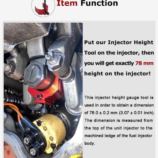 ✅Accurate Injector Height Measurement: Inconsistent injector height after valve adjustments is a common cause of uneven combustion and reduced engine efficiency. This gauge is precision-machined to set the correct injector height of 78.0 ± 0.2 mm (3.07 ± 0.01 in), measured from the top of the unit injector to the machined ledge of the injector body. Its two-step design allows controlled, repeatable adjustment during service procedures for consistent results across all cylinders.