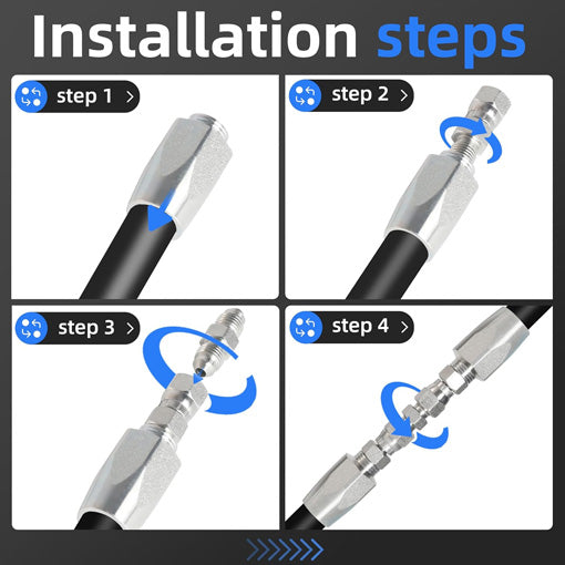 ✅ Fast & Instant Hose Repair: Unexpected hose failures can bring work to a halt. This hydraulic hose repair kit allows you to perform immediate, on-site repairs without removing the hose or waiting for replacements. Simply install the fitting and restore hydraulic function in minutes.
