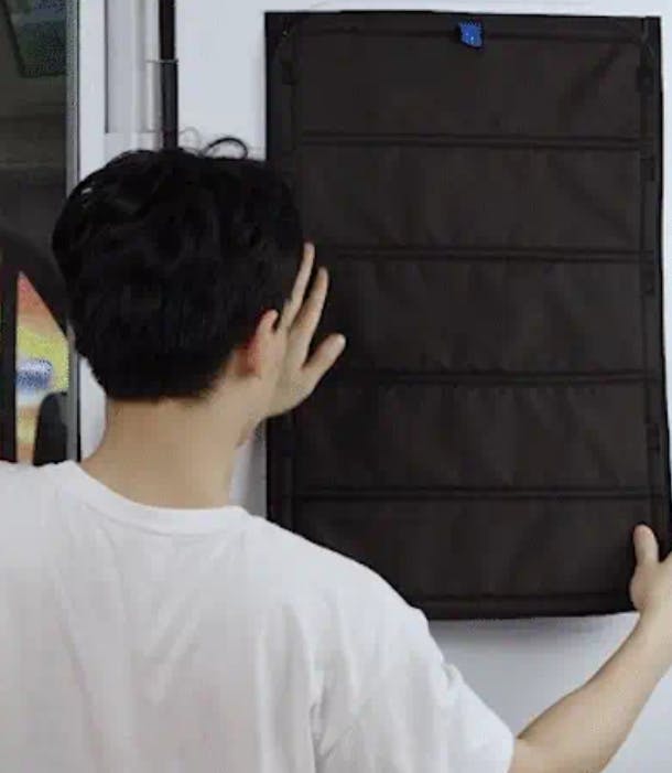 "Most of these products are either fully attached or not. This one however has Velcro down the sides that keep it attached to the door window. It’s also thick enough to provide extra insulation when you’re running heat or A/C. I find that virtually no adhesive-backed Velcro sticks that well to fiberglass, but in this case, it’s still going after almost a year.- Maria R.