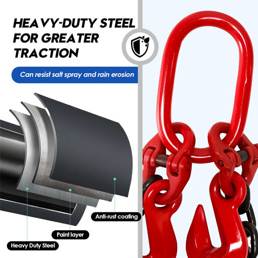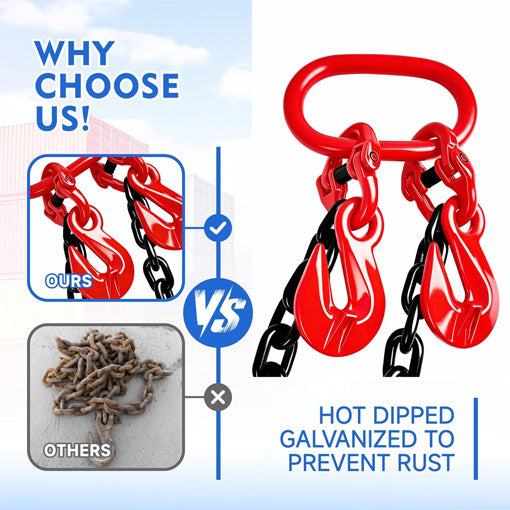 ✅Heavy-Duty Alloy Steel Strength: Forged from G80 grade alloy steel, this chain offers a load-bearing capacity 25% higher than ordinary chains and tensile strength eight times greater than the safety factor. With a 1/2 inch thickness and 5-foot length, it supports a working load limit of 8800 lbs, making it ideal for heavy container loads and demanding logistics environments. The lock hook can rotate 360° to adapt to different angles during fastening.