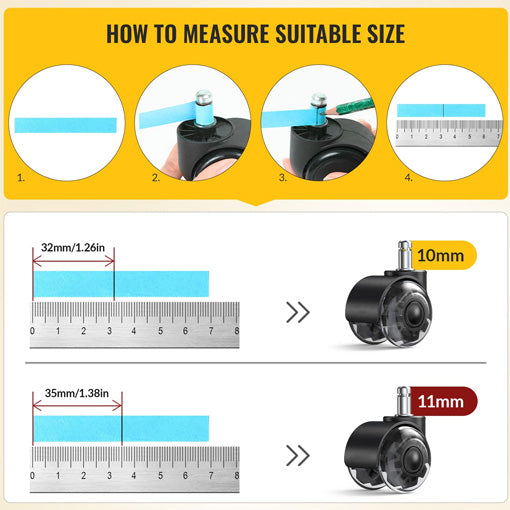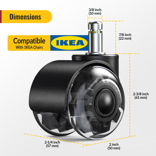 • Stem Size: 10x22mm (fits most 1KEA chairs) or 11x22mm (universal, except 1KEA)