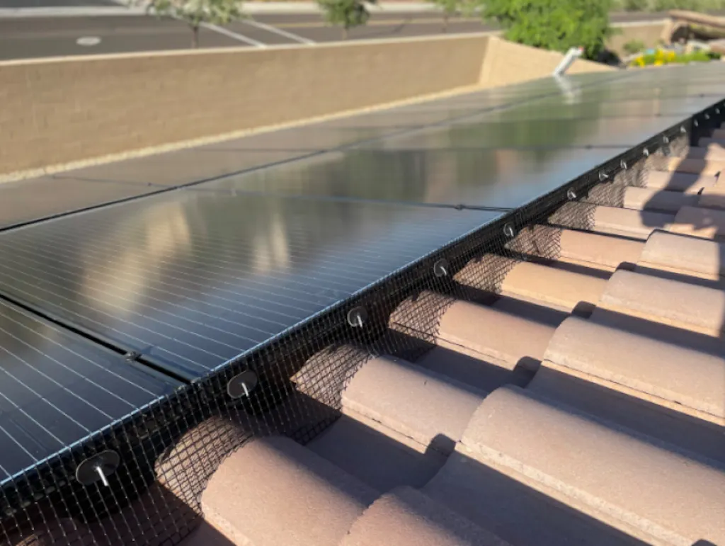 ✅MALLEABLE: This product helps in preventing any debris, critters, or birds from going underneath your solar panels and damaging them. The PVC coating and galvanized steel are easily cut for angled roofs and can be shaped easily to your preference depending on the roof structure of your home, especially working around conduits, electrical boxes, railings, and vents.